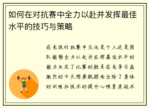 本文将探讨如何在奥运赛场上精通乒乓球与田径技巧的训练与策略。通过四个主要方面的分析,文章将详细介绍这两项运动的专业训练方法,以及在奥运舞台上如何将这些训练策略有效地转化为比赛中的优势。首先,我们将从“...